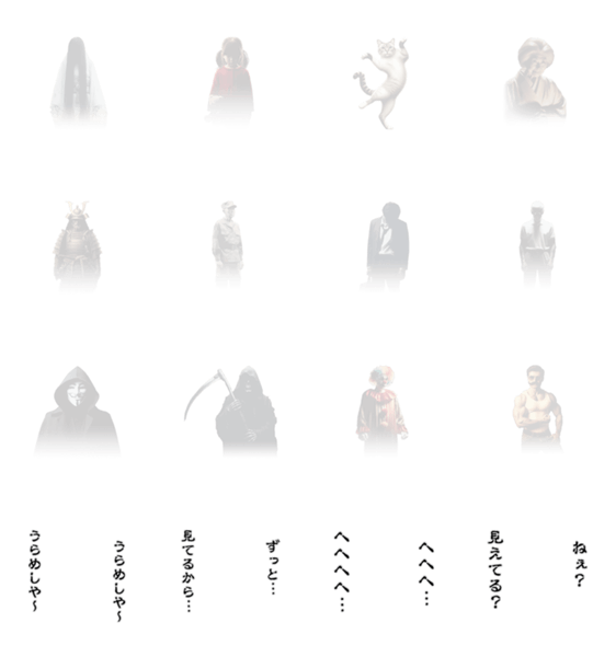 うっすらと浮かび上がる様々な背後霊たち。スタンプアレンジにも写真のデコレーションにも使えます。ほら、あなたの後ろにも…