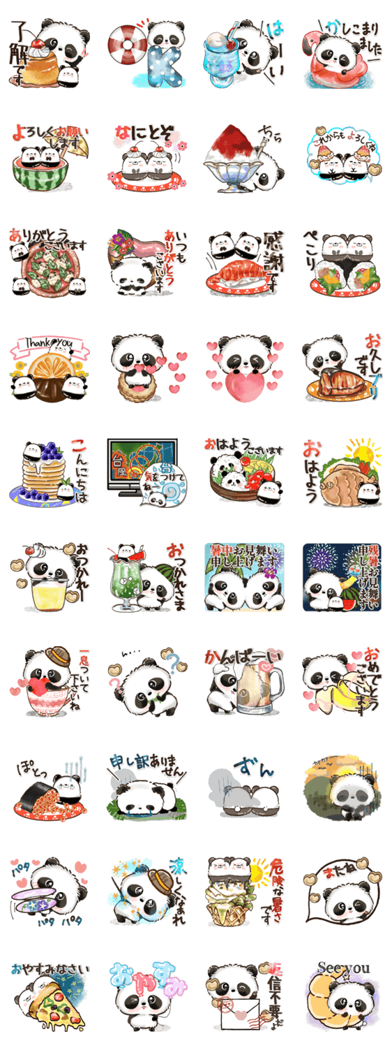 キュートなちびパンダと仲良しの白玉パンダ♡夏に使い易いスタンプばかりを揃えました♪毎日/すいか/パンダ/ちびパンダ/パンダ/挨拶/年中/毎日/梅雨/夏/Bnasuko