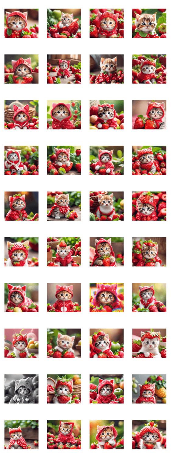 春夏秋冬年中使える/文字なし/アレンジ/素材/ねこ/こねこ/ネコ/キャット/cat/フルーツ/いちご/ストロベリー/strawberry/食べ物/果物/人気/おすすめ/実写/画像生成/AI