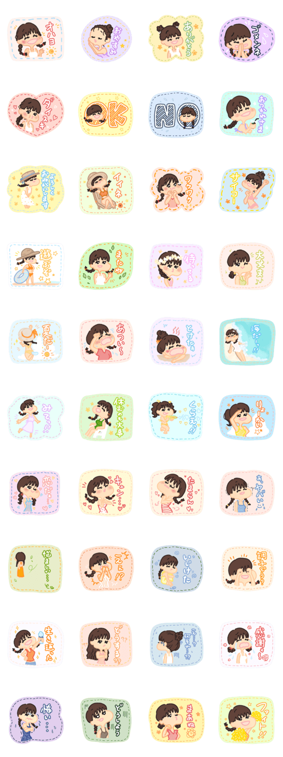 真夏に恋する女の子。 使えるスタンプ盛りだくさん!