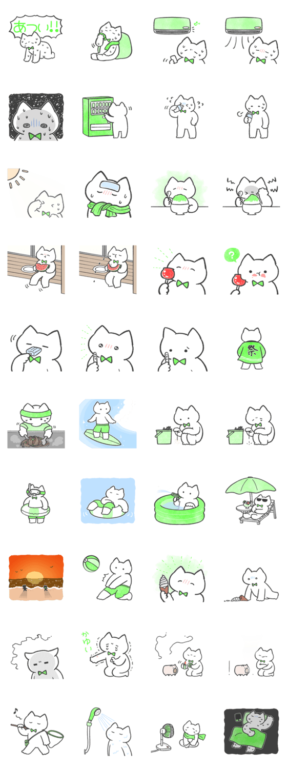 緑推しねこ(夏) -LINEスタンプマニア