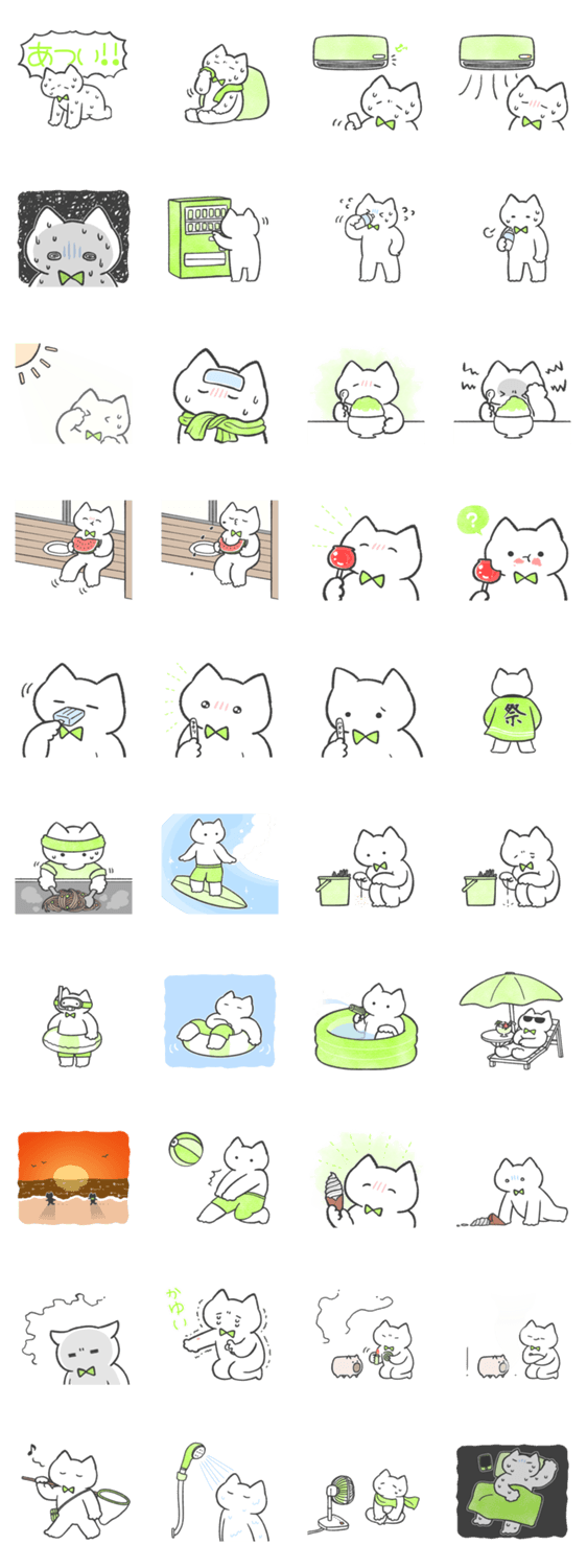 黄緑推しねこ(夏) -LINEスタンプマニア