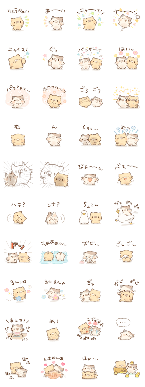 けだまとこだま。なかよし兄妹のスタンプ第2弾です。