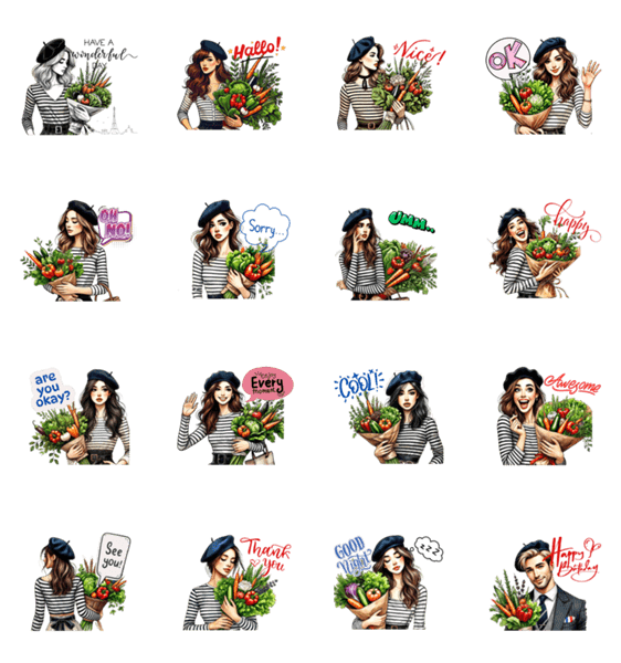 おしゃれパリジェンヌが持つ野菜ブーケ -LINEスタンプマニア