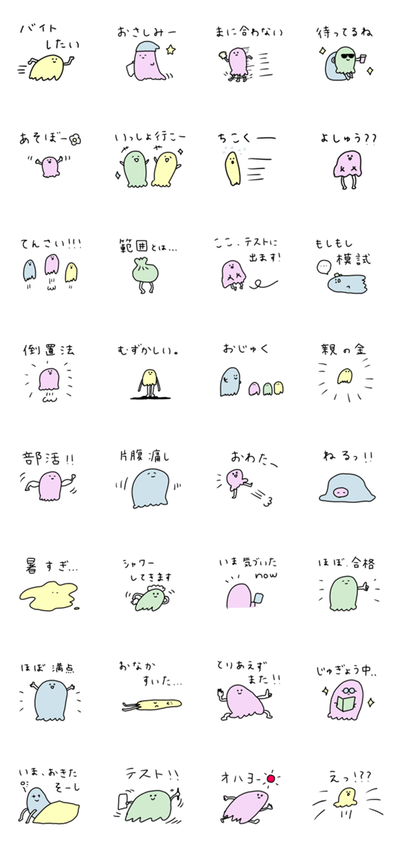 高校生活をゆるりと過ごすおばけ達のスタンプです。
