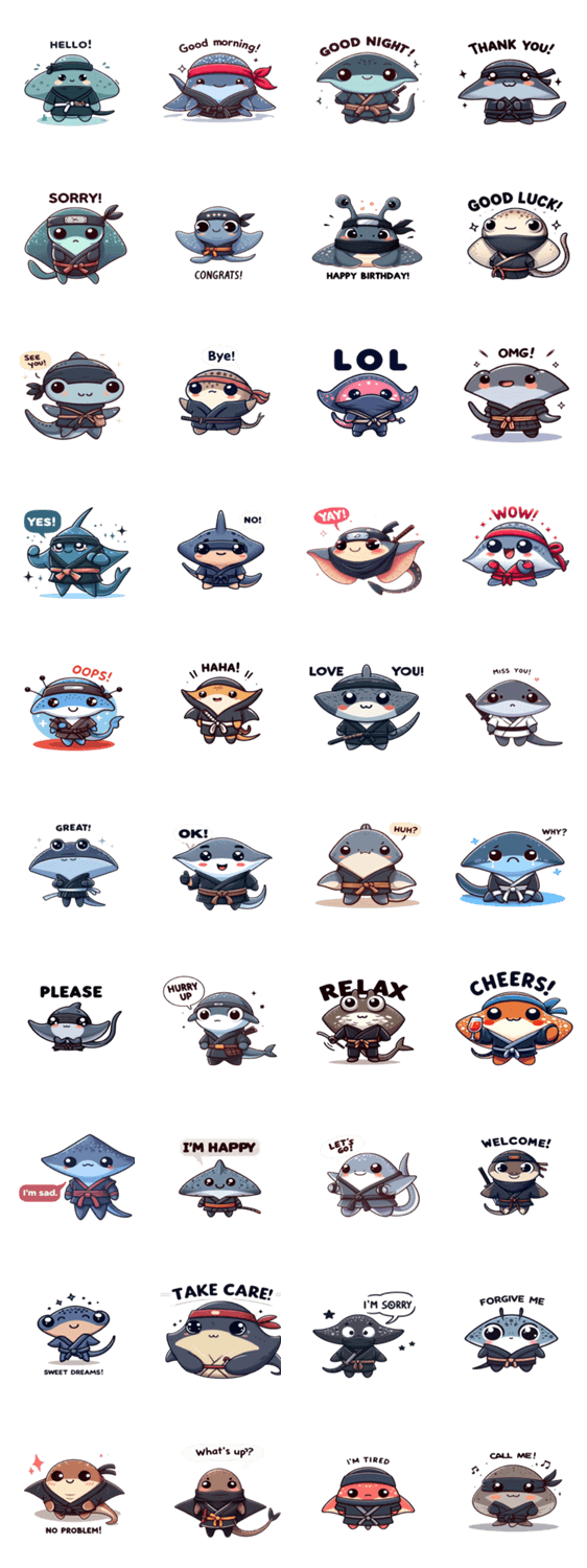 かわいい忍者のエイのスタンプ 001 -LINEスタンプマニア