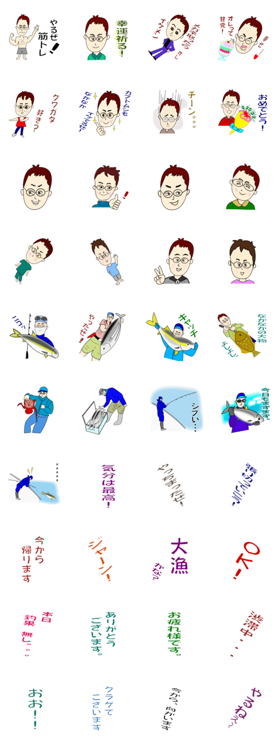 釣りが大好きなお父さん!筋トレも頑張って、ユーモアたっぷりのお父さんが日常会話でも笑わせくれるスタンプです!