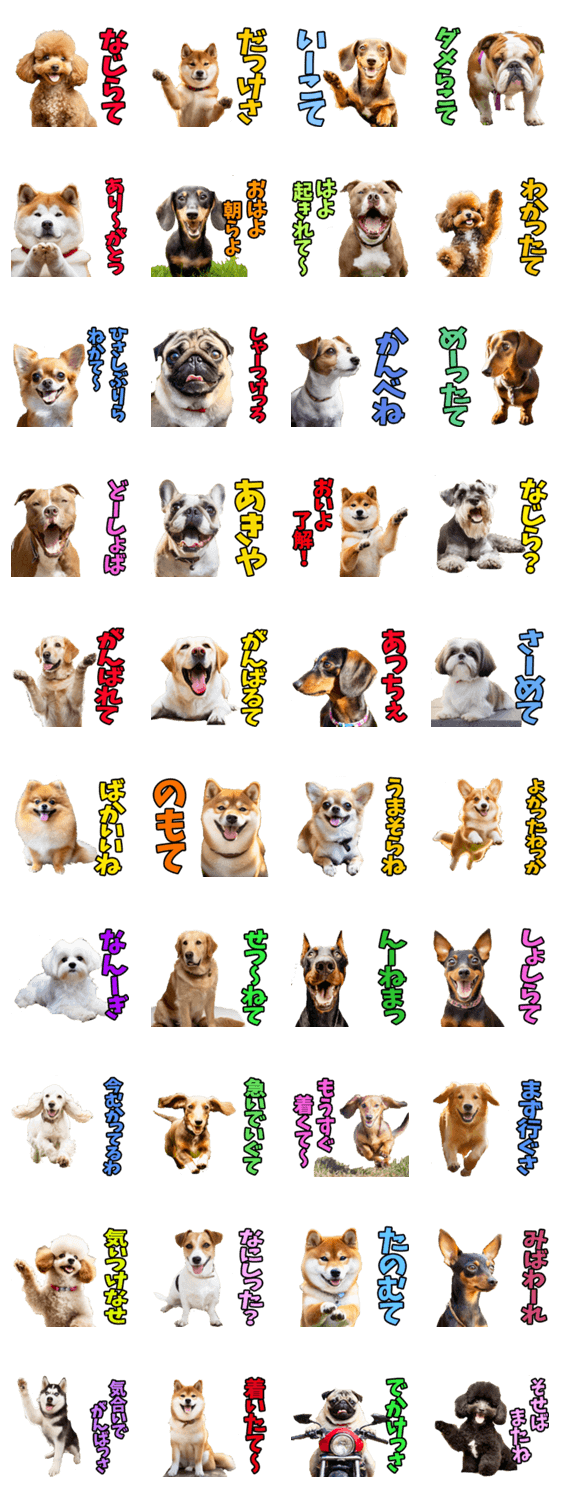 | スタンプ説明 | リアルなわんちゃんの新潟弁スタンプです。他にも関西弁、博多弁、広島、名古屋、山形、福島、岡山のわんこやにゃんこも発売中!! |