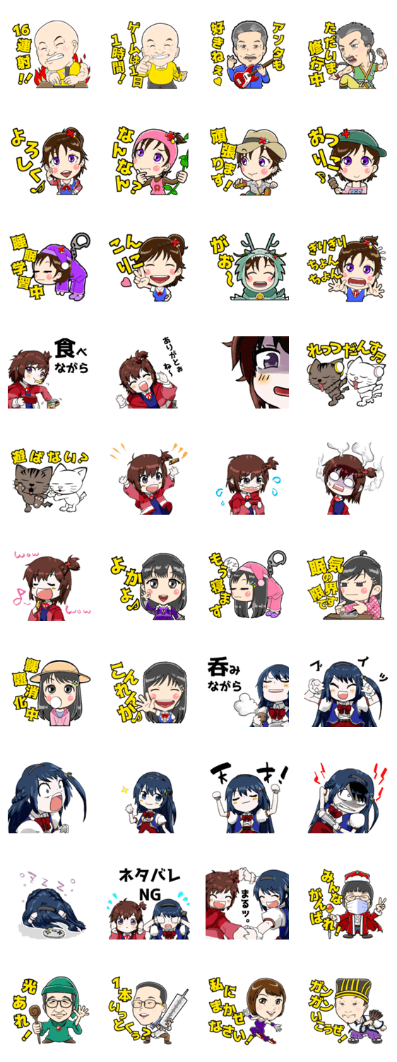 筑紫りこ・連歌屋ひめ香・高橋名人・国本剛章氏など、れとろげ!の様々なスタンプをご用意しました! スタンプ作成:まーちゃん@marchan_0101 なたさんさん@korikoro_k4