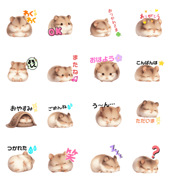 | スタンプ説明 | キュートなハムスターのスタンプです。毎日気軽にお使いいただけます。 |