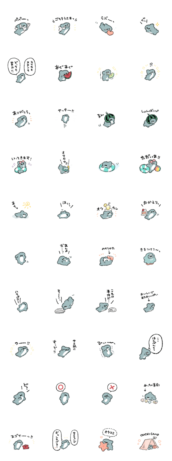 夏にぴったり涼しげなちいさいサメのスタンプ。あかちゃんなのでサメ肌はもちもち!