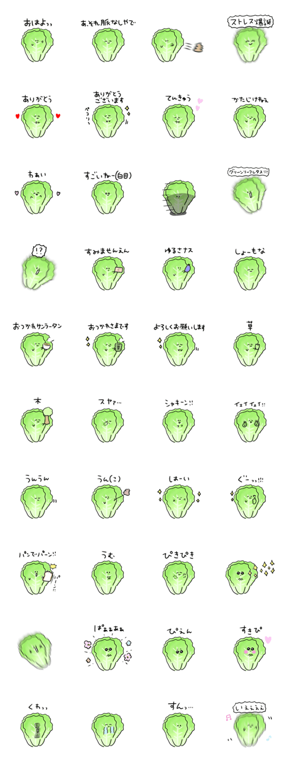シンプル グリーンリーフレタス 日常会話 -LINEスタンプマニア