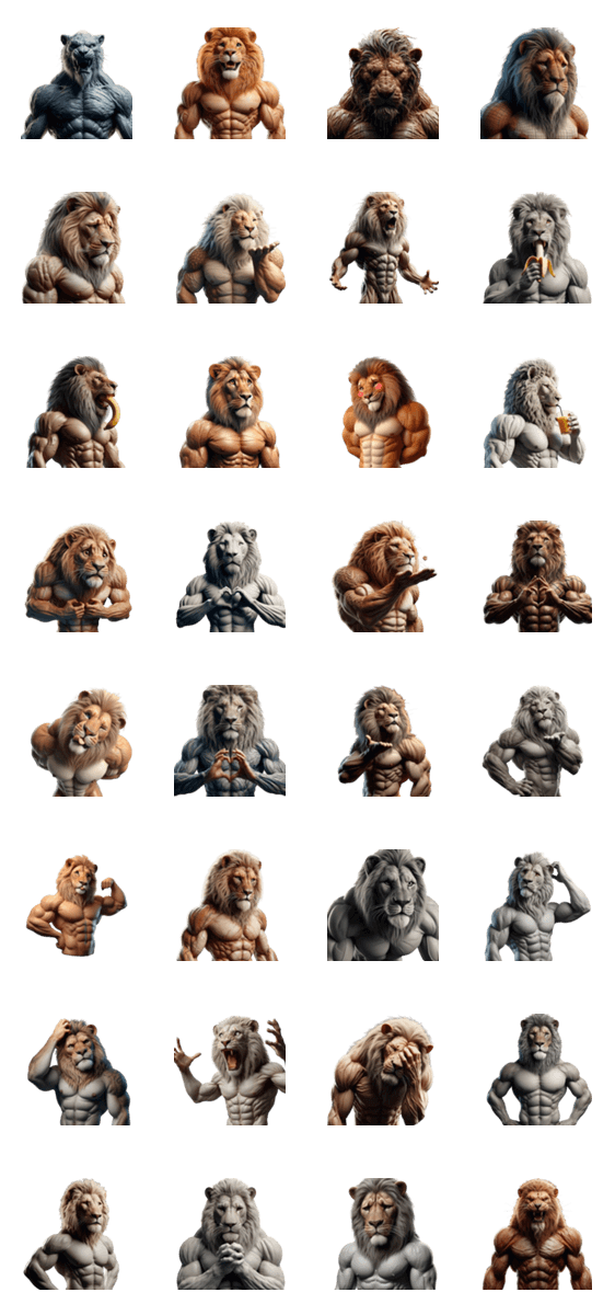 | スタンプ説明 | "女々しいライオンキング、ライオン、キング、女々しい、表現力豊か、イラスト、面白い、LINEスタンプ、 |