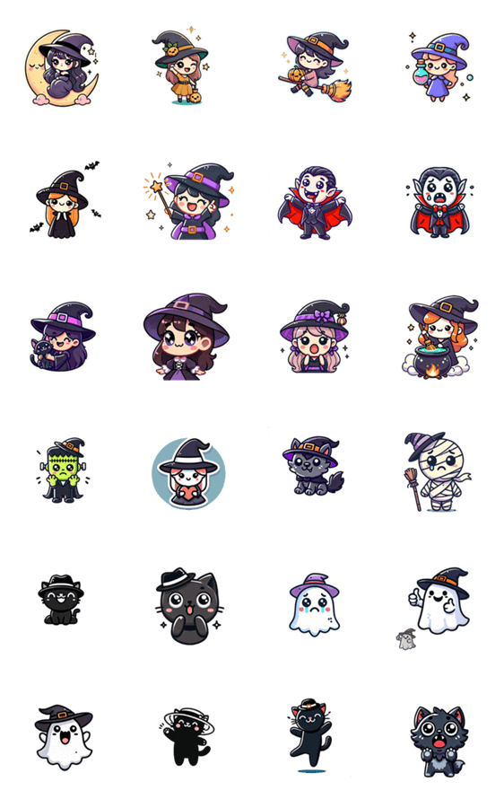 ハッピーゴーストと魔女が繰り広げる楽しい冒険!キュートでユーモラスなスタンプで、毎日のチャットに魔法をかけましょう。