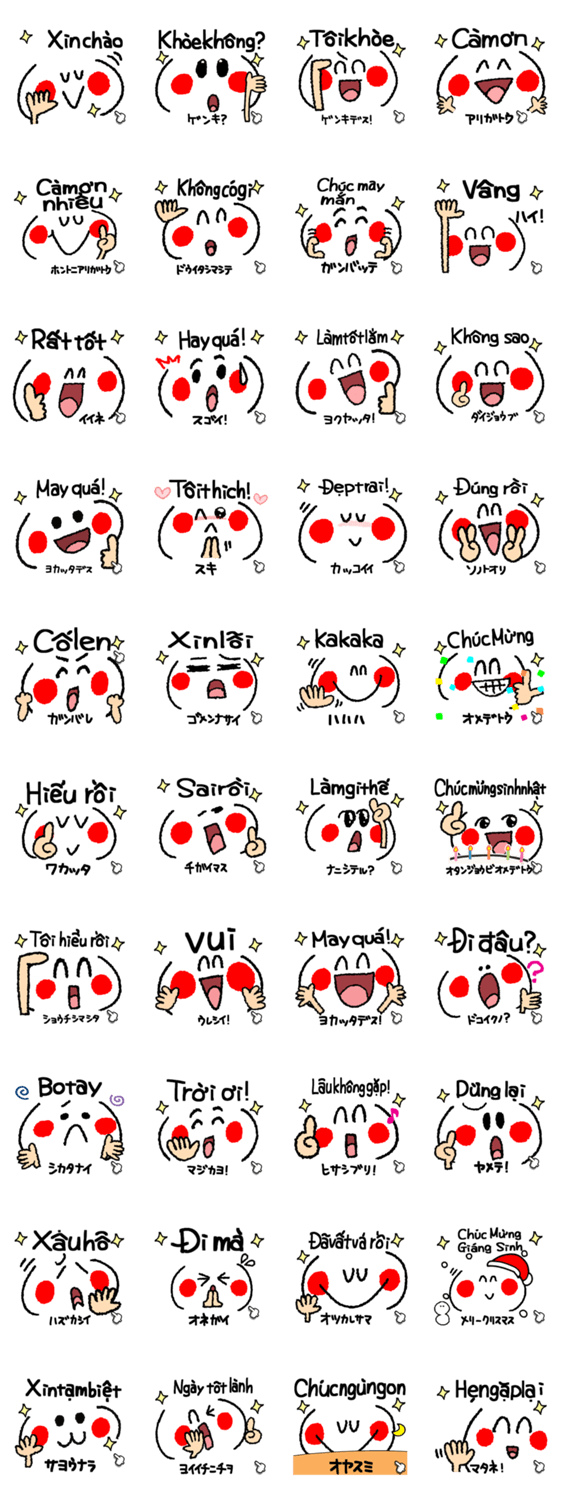 スタンプ説明 [ベトナム語&日本語の勉強]笑顔いっぱい!