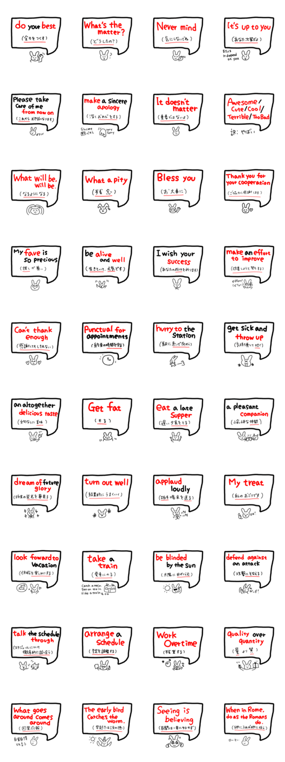 日々の英語が少しでも身につけばいいなという気持ちを込めて、一石二鳥なスタンプです。