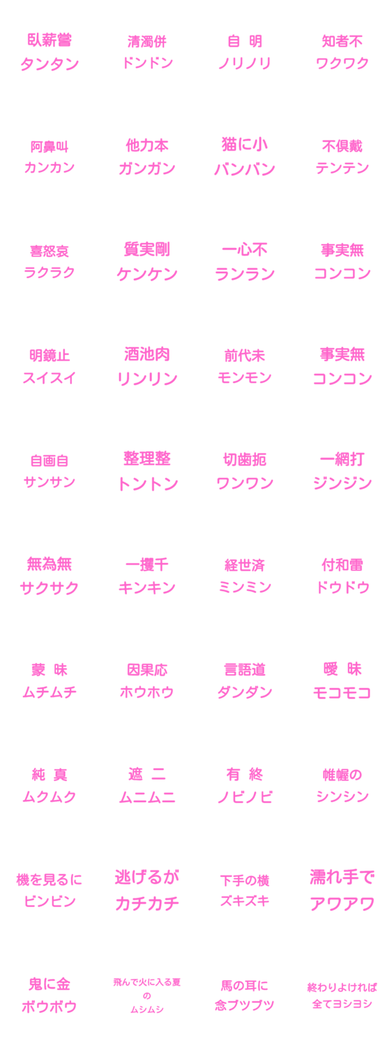 四字熟語やことわざが急にオノマトペみたいになるスタンプです。