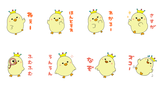 かわいいうなずきで会話を楽しく盛り上げましょう。 ひよこ/ハート/王冠/かわいい/会話/うなずく