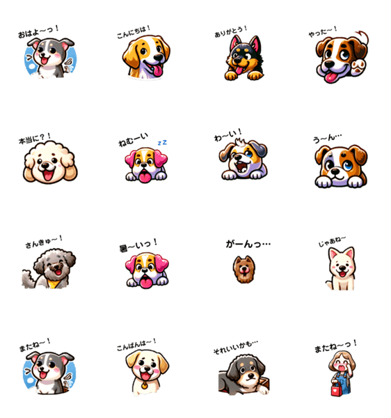 | スタンプ説明 | 可愛いワンちゃんの日常で気軽に使えるスタンプです。 |
