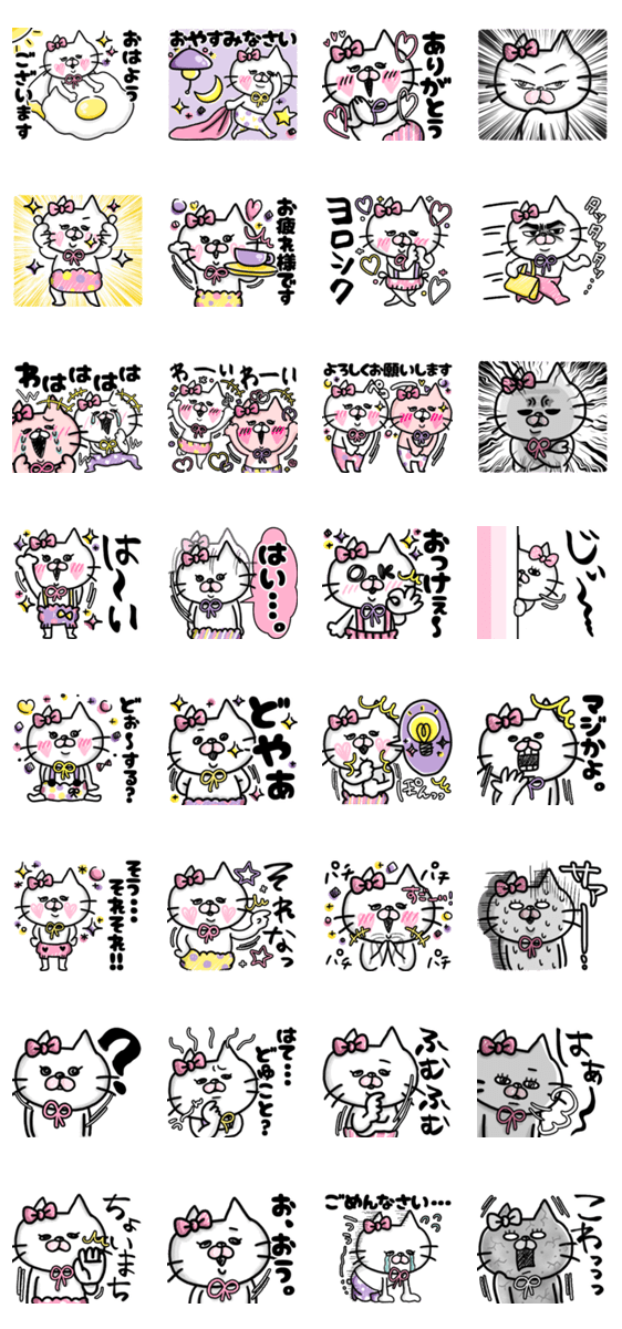 ねこのきゃりかの毎日使えるでか文字スタンプ*♥ねこ/仲良し/友達/即レス/挨拶/連絡/家族/仕事/挨拶/でか文字/カップル/夫婦/乙女系