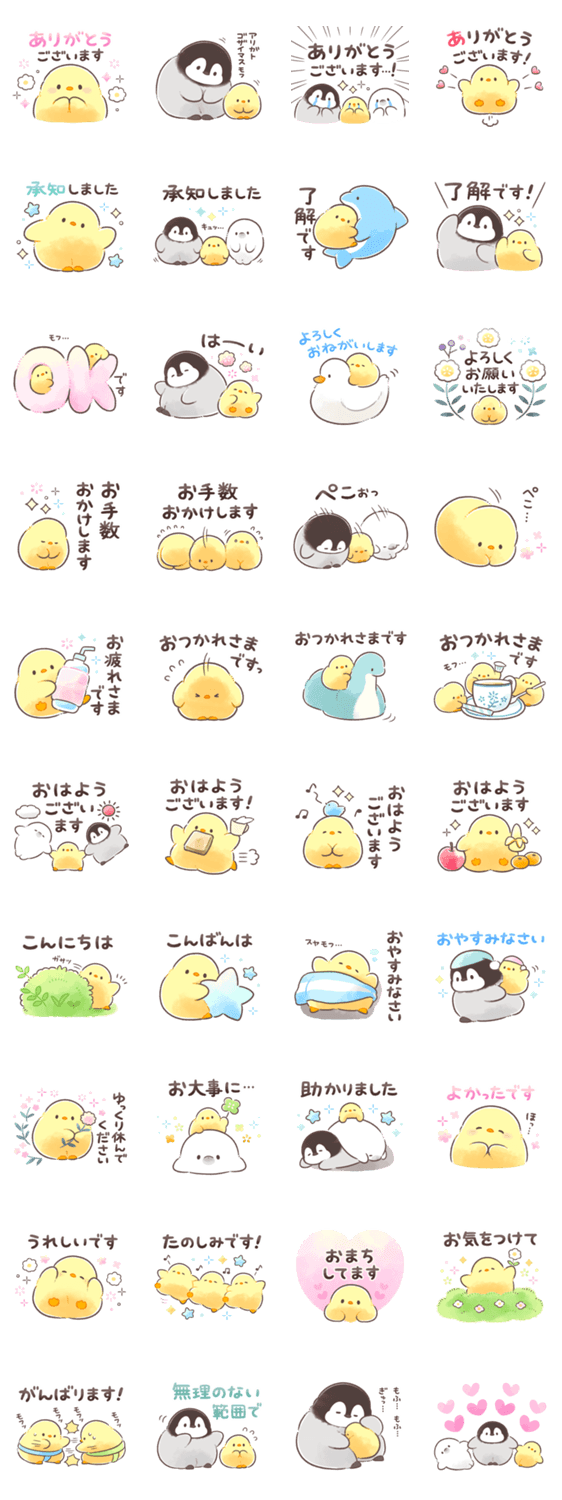 もふもふなヒヨコのスタンプ敬語verです。よく使う言葉をそろえてみました♪日常のやりとりにモフモフをどうぞ…