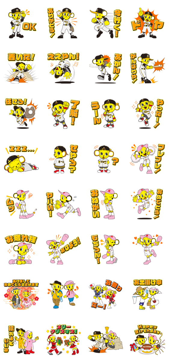 | スタンプ説明 | 阪神タイガースのマスコット「トラッキー」「ラッキー」「キー太」がLINEスタンプになって登場! |