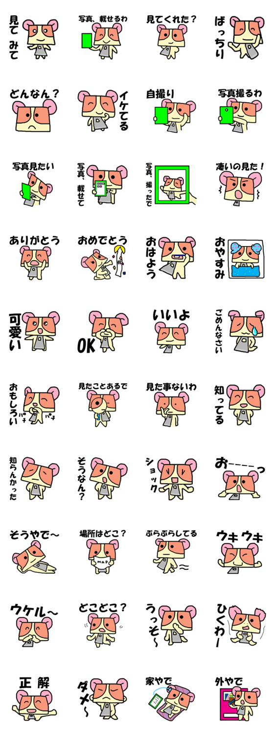 アクセサリーのファスナー付きキャラクターが自撮りや日常で使える言葉を使ったスタンプです。みんなで楽しく使ってください。