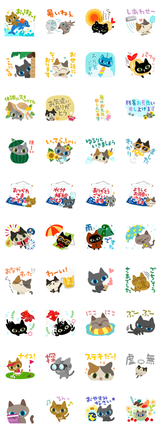 ねこにゃん達の夏便り(修正版) -LINEスタンプマニア
