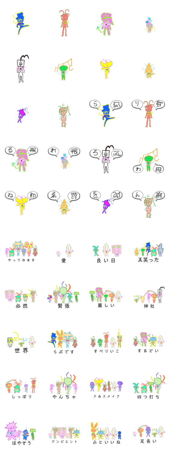 龍体文字を絵にしました。「らりるれろ」「わゐゑを」「ん」の順番になっています。