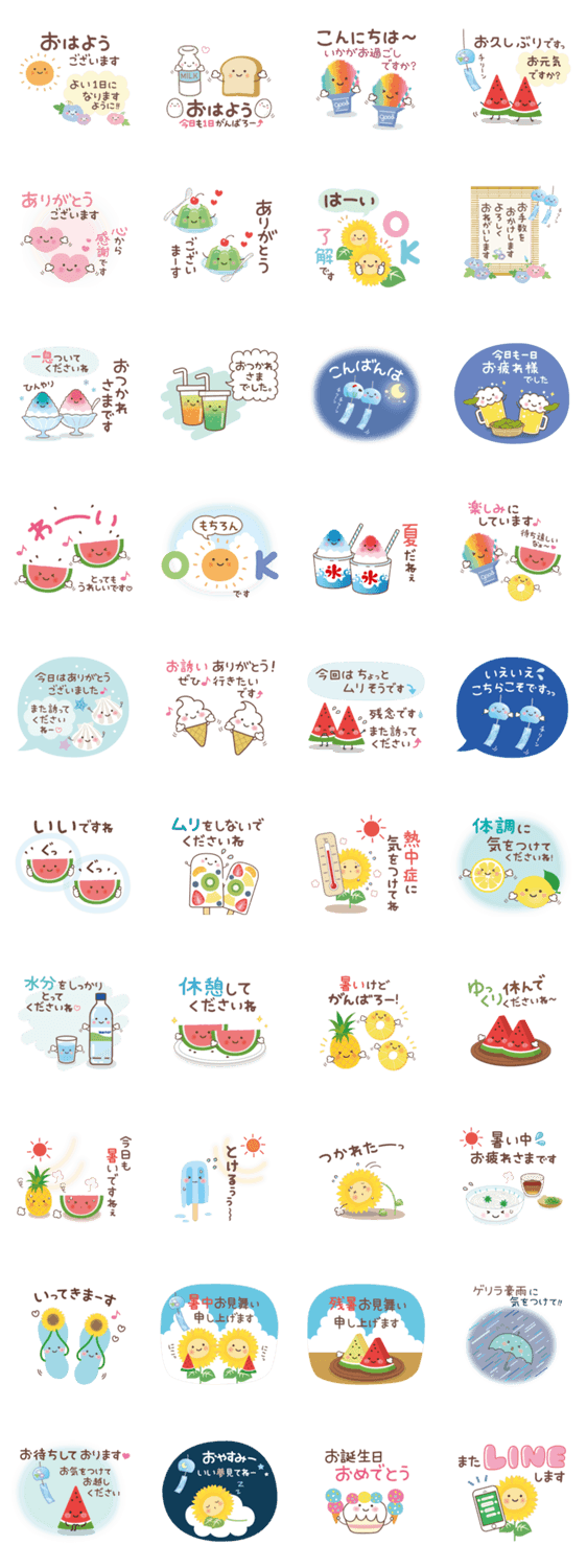 心のこもった言葉や夏を感じる毎日の挨拶スタンプ♪ 年齢問わず、誰でも使えます♪敬語もたくさんあり!