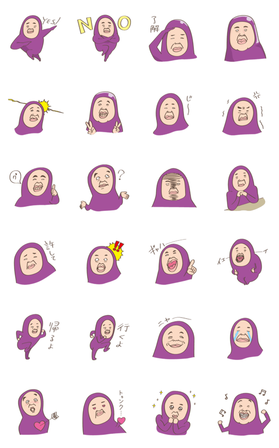 全身タイツのおばさんパープル -LINEスタンプマニア