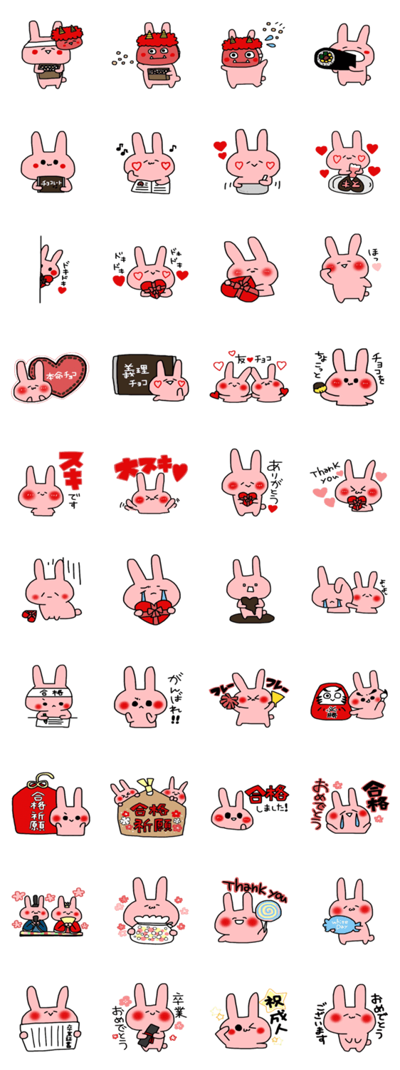 かわいいうさぎのスタンプ!2月、節分、バレンタインデーと3月、受験、ホワイトデー、卒業に使えるかわいいけど面白いスタンプです☆★