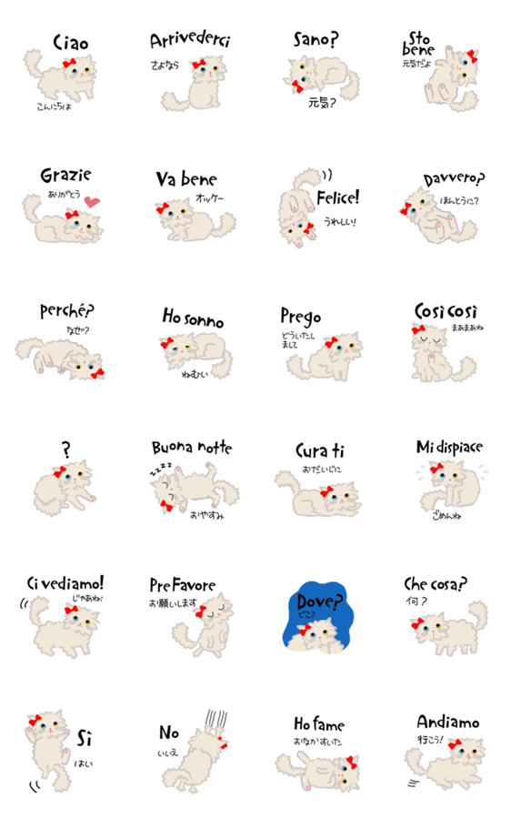簡単な日常会話に使えるスタンプです。楽しくをイタリア語を使ってみよう。