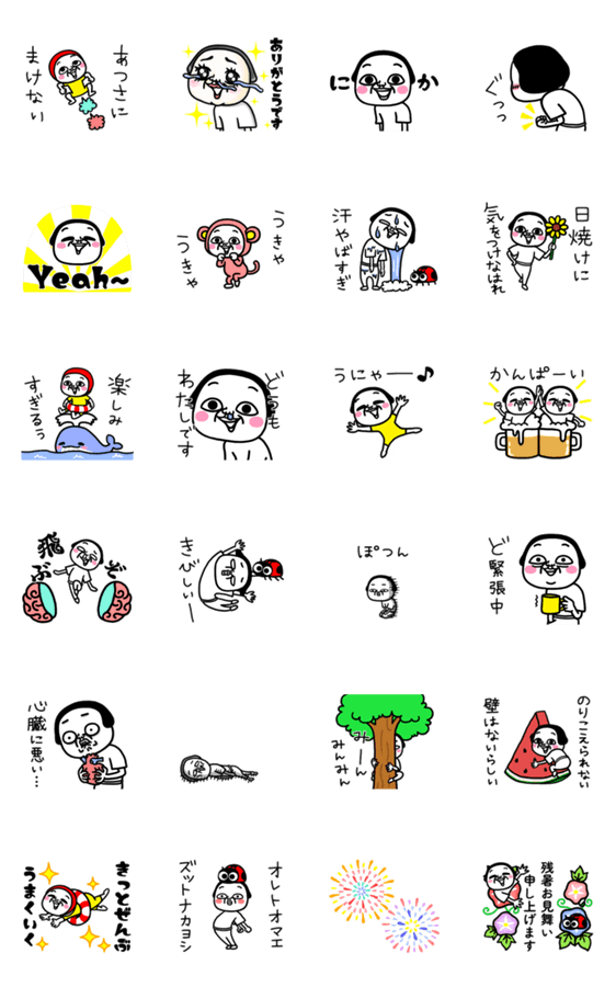 マイペースに生きる人々のためのシュールで自由なナンセンスなスタンプ! 暑さも吹き飛ぶ夏のスタンプです!