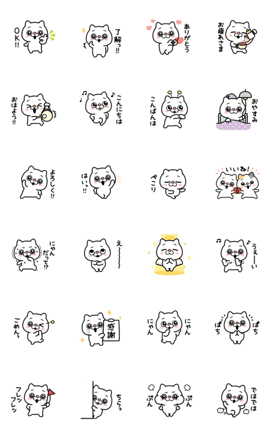 白ネコのあいうえお・・・ってるスタンプ