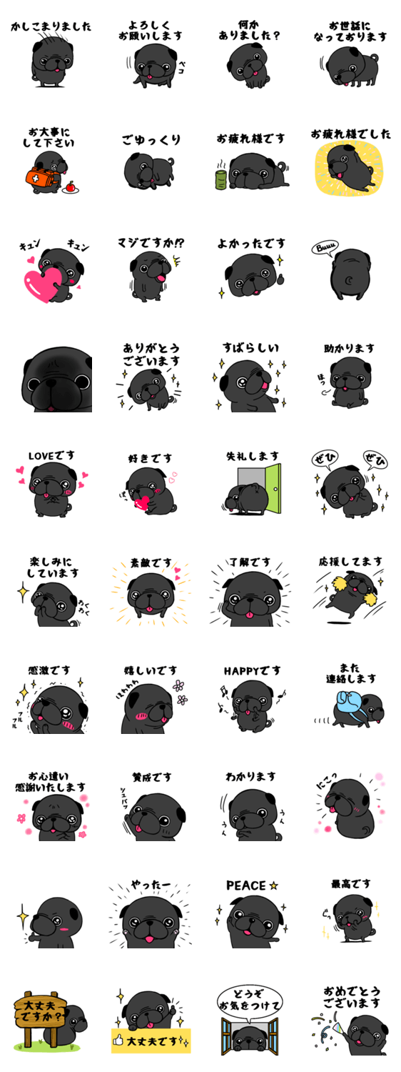 黒パグスタンプ第3弾。あると便利な敬語スタンプです。