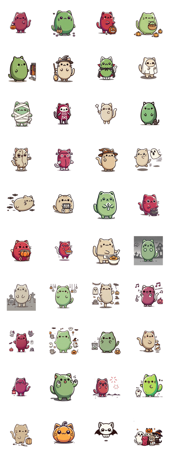 | スタンプ説明 | 豆ねこ三兄弟(あずき、だいず、そらまめ)のハロウィン用のスタンプです。 |