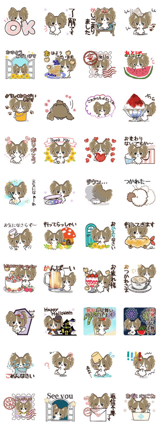 ちの子のスタンプ♡挨拶♡愛犬パピヨン