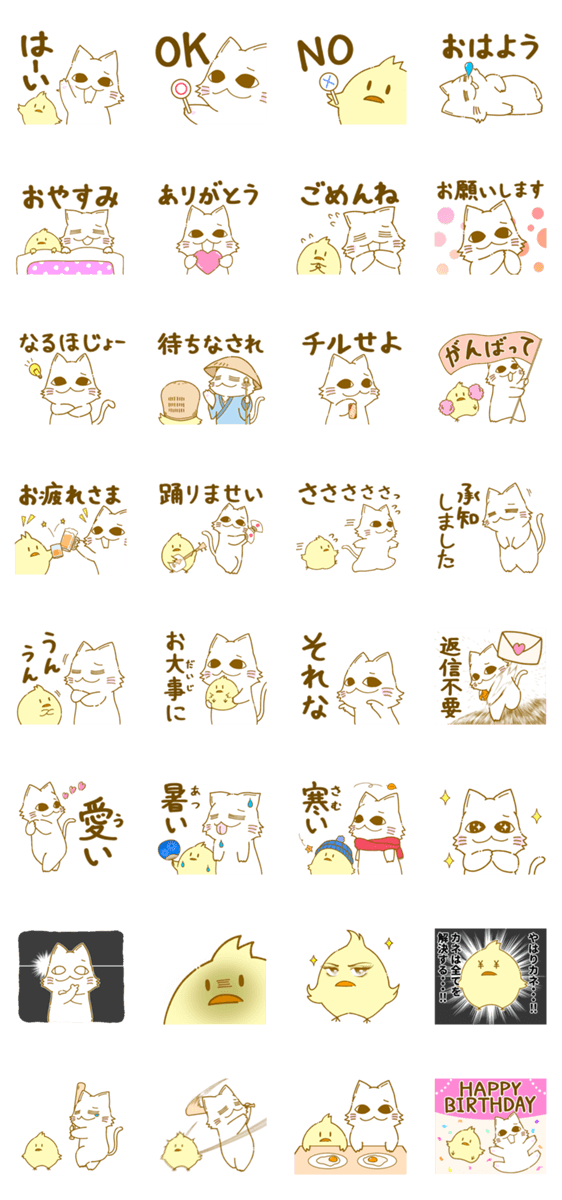 ヒヨコと子猫のスタンプ。使ってやってください。