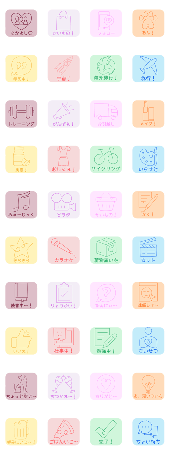 スタンプ/日常/シンプル/分かりやすい/カラフル/年配/毎日使える/文字が大きい/バリアフリー/ステッカー/ロゴ/仕事/先輩/同僚/友達/家族/カジュアル