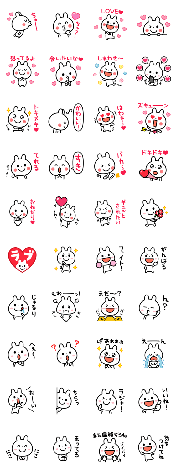 大好きな人や大切な人へ、 やさしい気持ちで伝えることができるかわいいラブなスタンプです♡(うさぎのスタンプ)