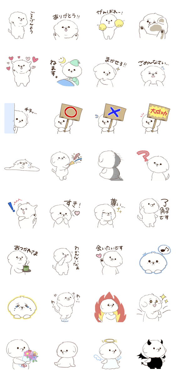白くてふわふわのビションフリーゼが毎日をたのしくすごす 日常使いしやすいシンプルなスタンプです。