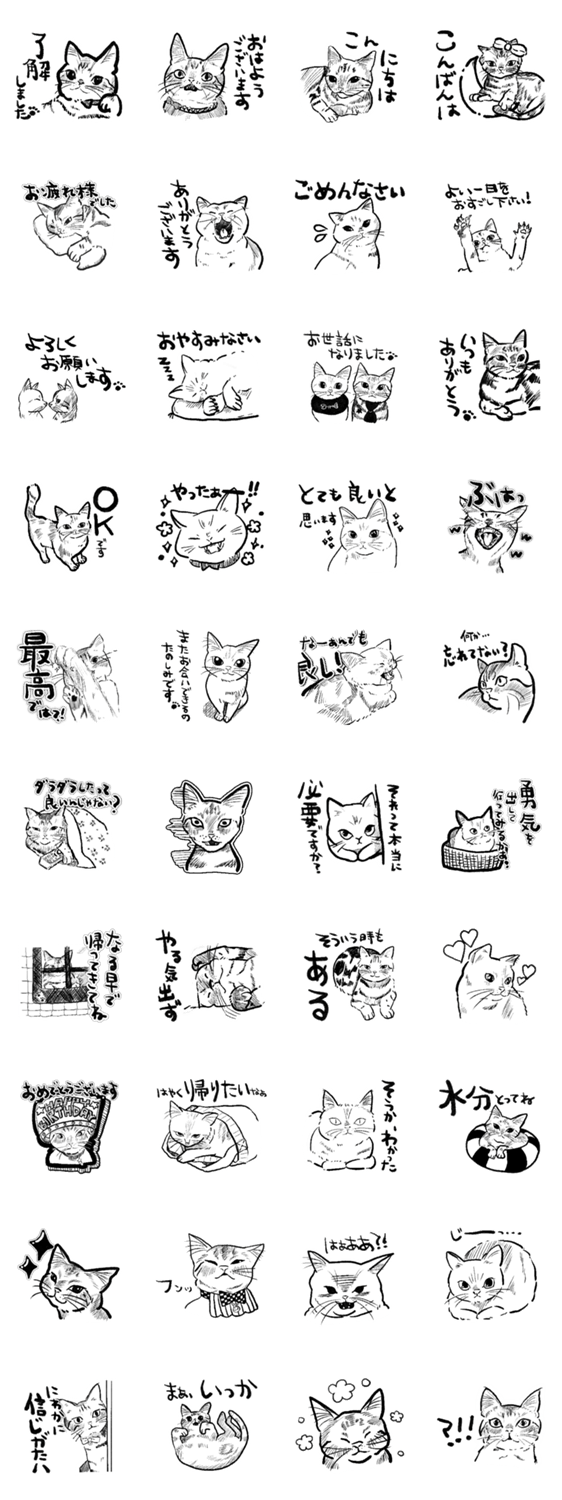 白黒で描いた猫です。敬語だったり馴れ馴れしかったりダラけたり、いろいろ詰めました。ご使用方法もいろいろです。