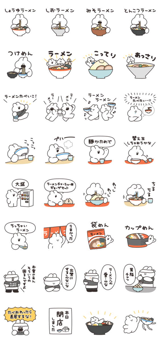 ラーメンとうさぎのスタンプです。