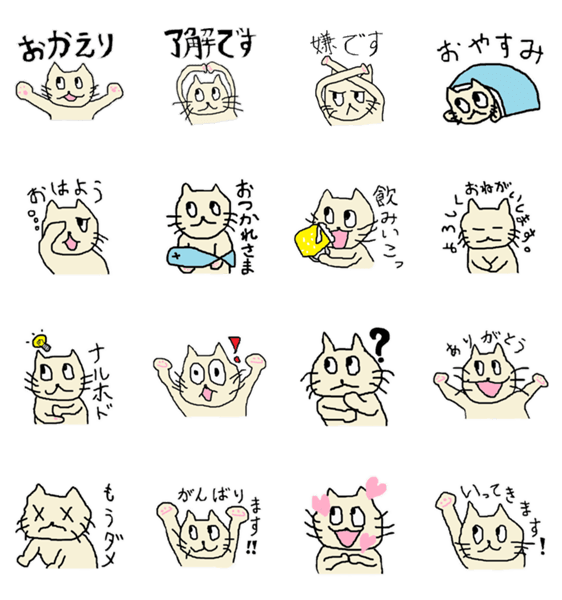 | スタンプ説明 | 日常でいつでも使えるシンプルな猫のスタンプです。 可愛い「じんじねこ」が毎日の生活を面白く彩ります! でか文字スタンプで、どんな場面でも使えます! |