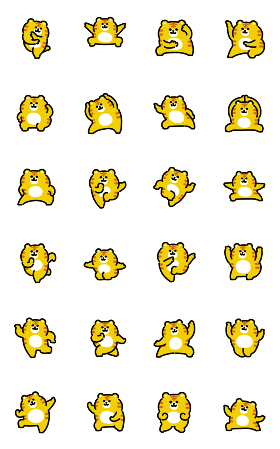 踊る虎のアニメーションスタンプです。タイガー/おどる/面白い/楽しい/笑顔/シュール/ゆるい/癒し/文字なし/ゆるかわ/シンプル/使いやすい