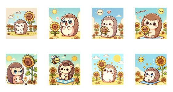 ひまわりと一緒のかわいいはりねずみたちが、さまざまな感情を表現します。幸せ、驚き、愛などの気持ちをチャットで伝えましょう!
