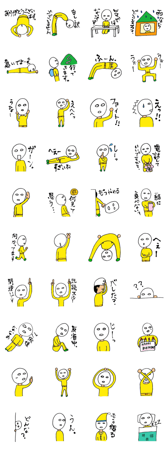 シンプルでちょっとシュールなスタンプです。でもなんだかかわいい。友達や家族との会話の中で使ってください。