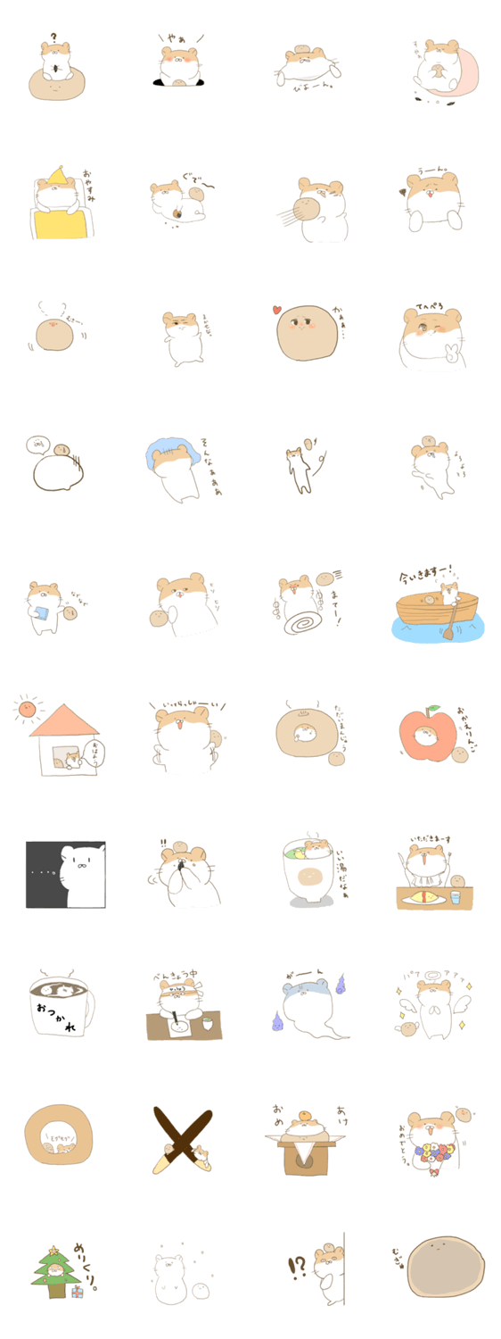 くいしんぼうなハムスターとその友達のおまんじゅうのスタンプです。
