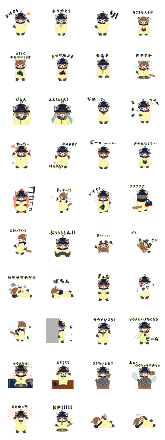 挨拶など毎日使える内容も入ったサ活しているレッサーパンダのスタンプです。